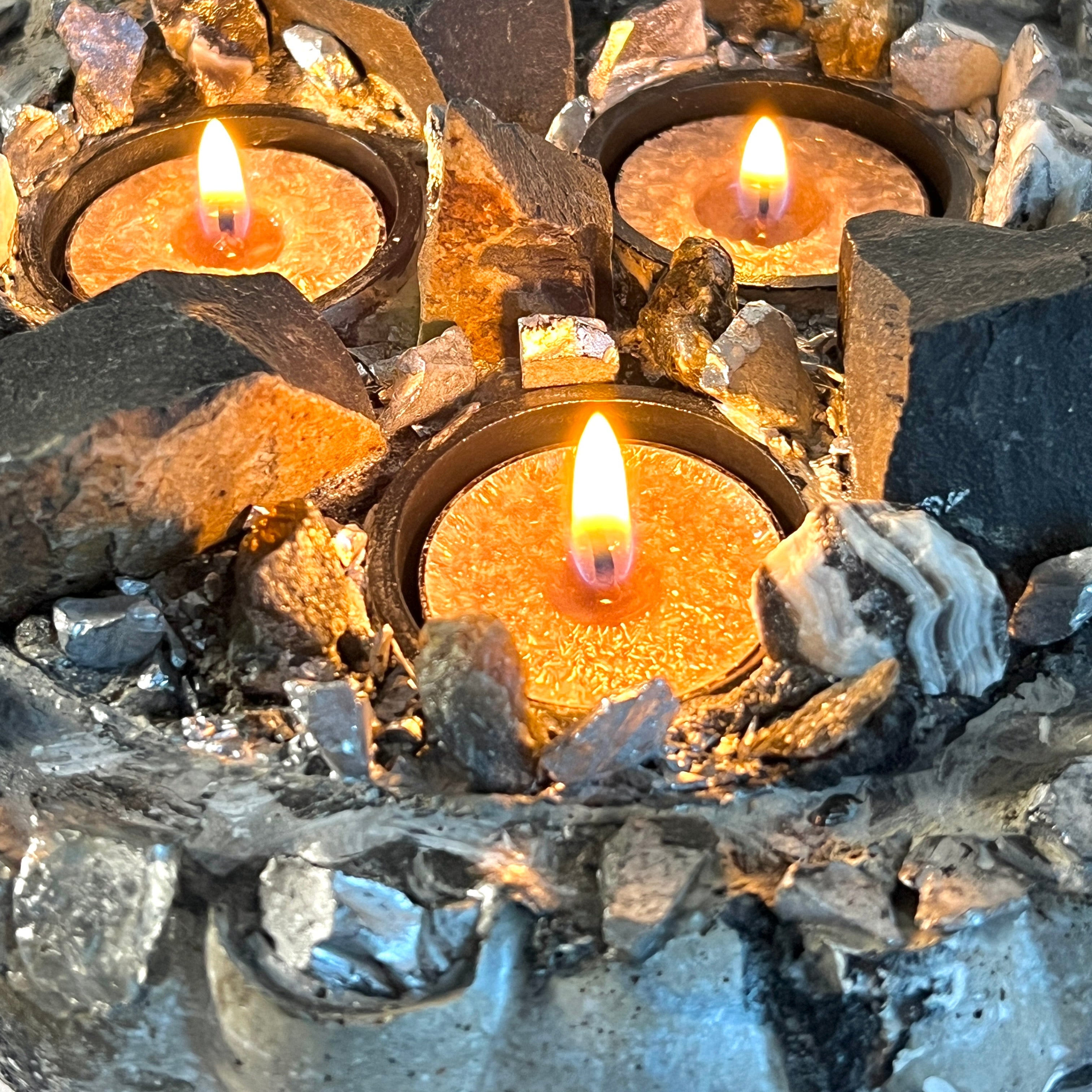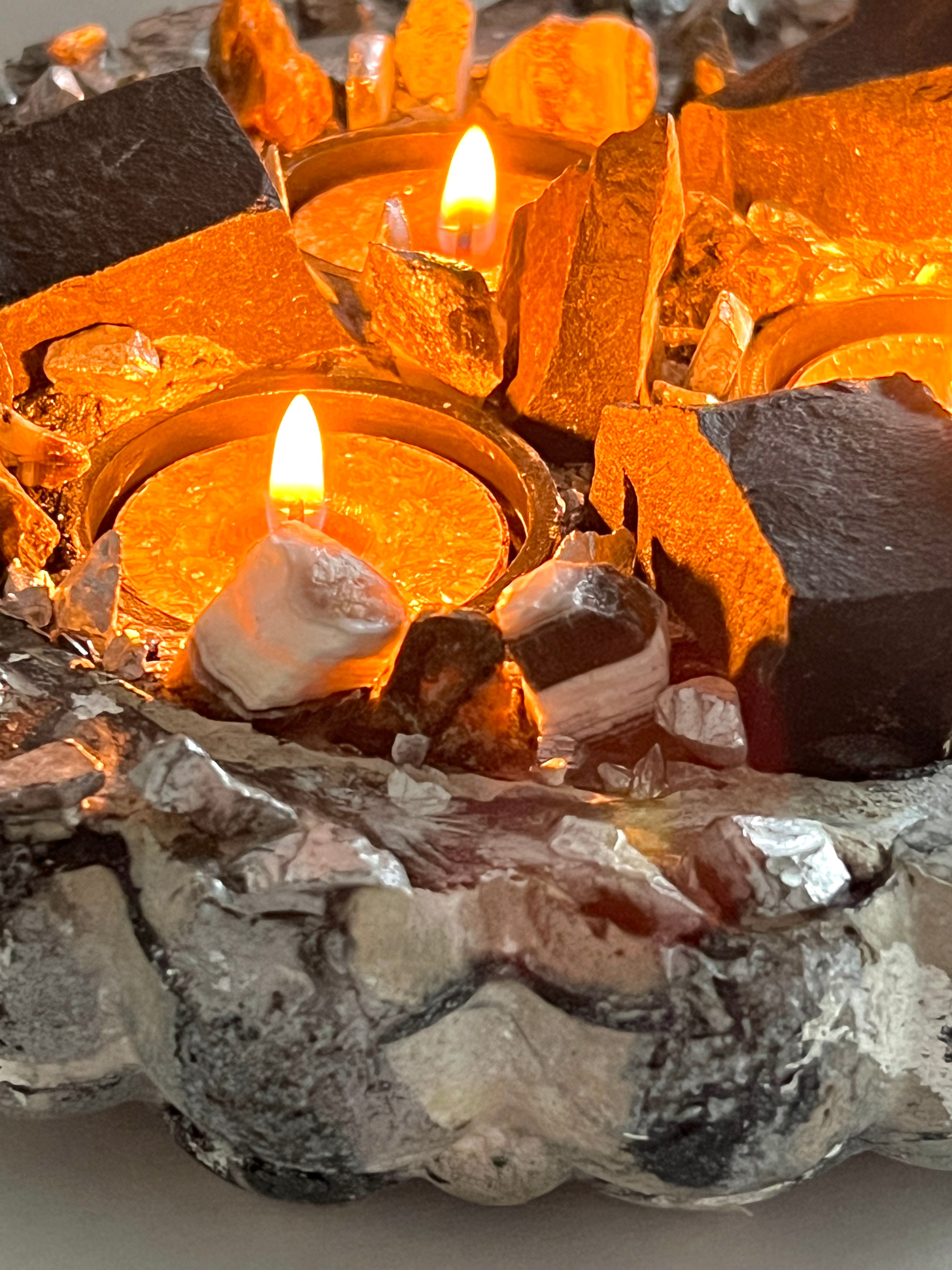 Each candlescape is one-of-a-kind, shaped and finished by hand. Designed with replaceable tealight candles, it can be enjoyed again and again—an enduring decorative piece that evolves with every glow.