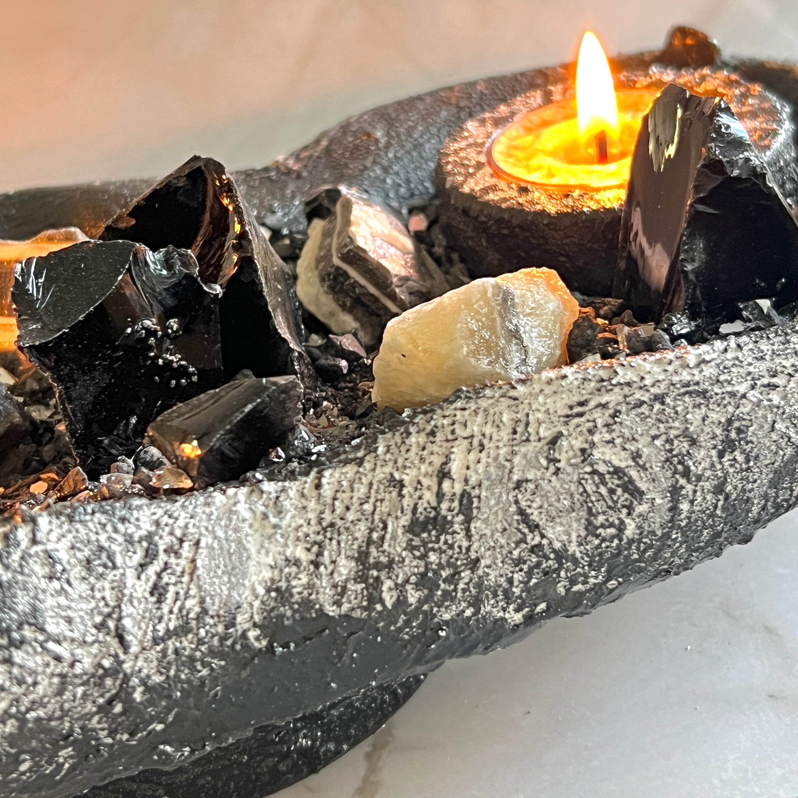 FIAMA - Obsidian + Onyx Crystal Candle Centerpiece I Home Decor