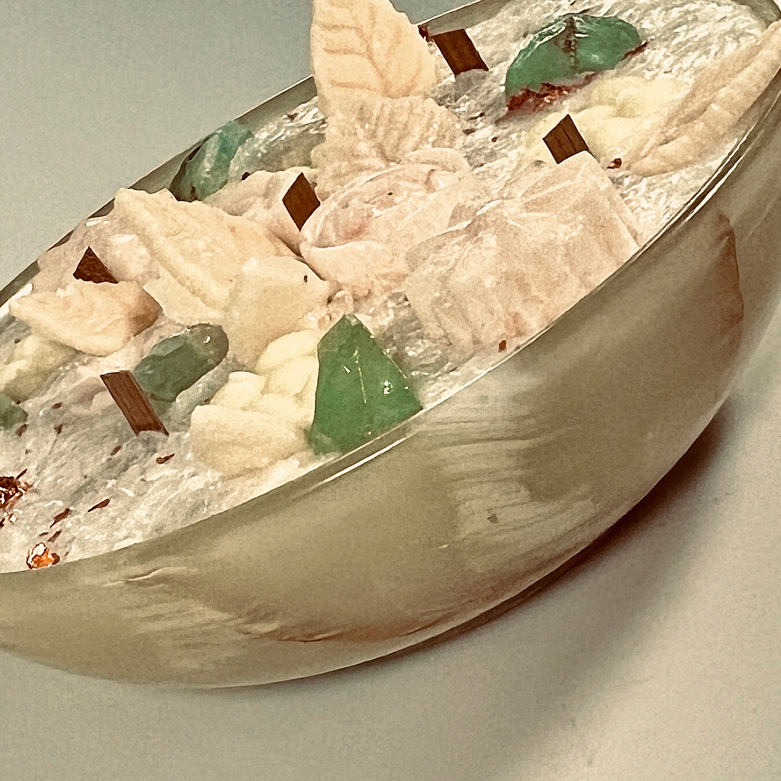 A serene blend of natural onyx, green calcite, and sculpted wax—crafted to bring freshness, balance, and quiet beauty into your space.