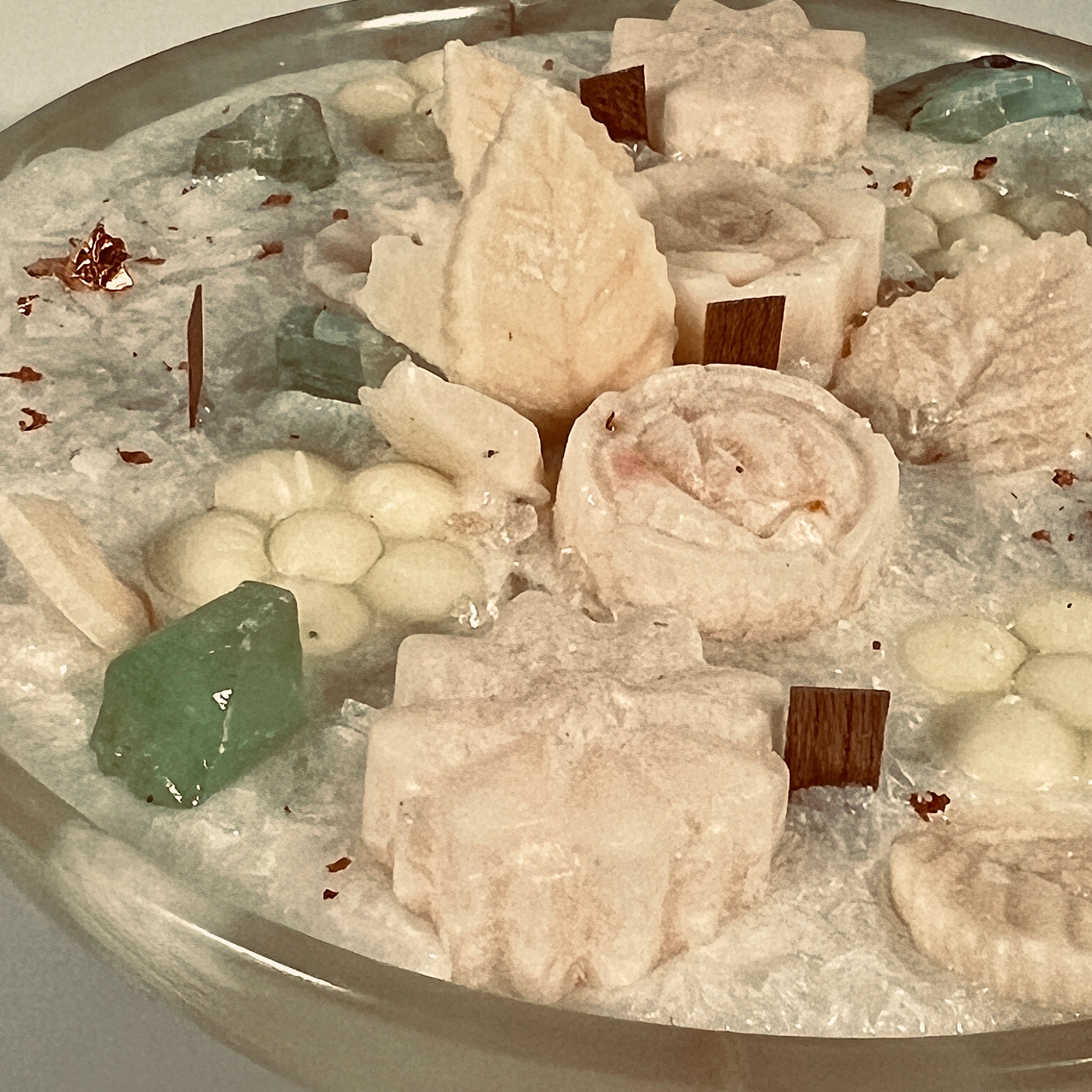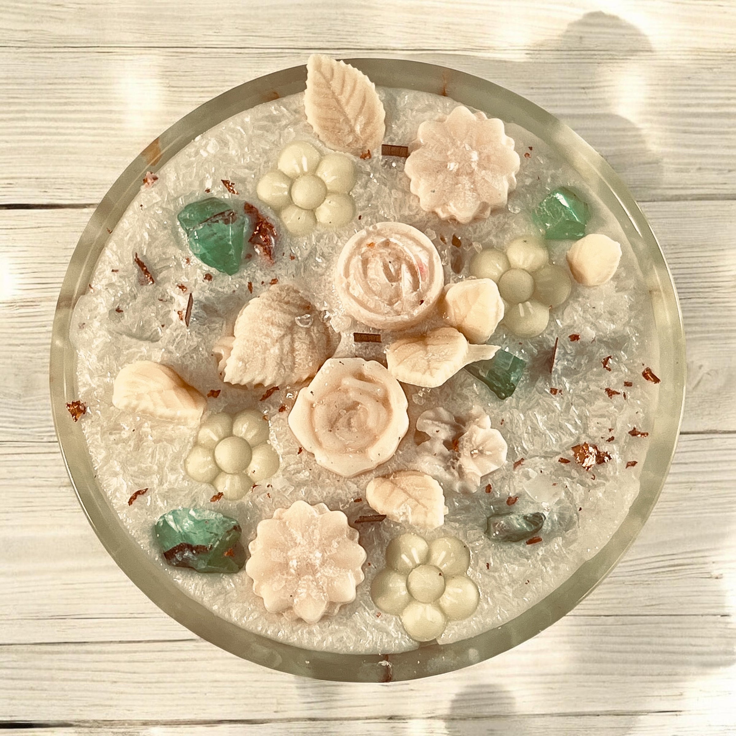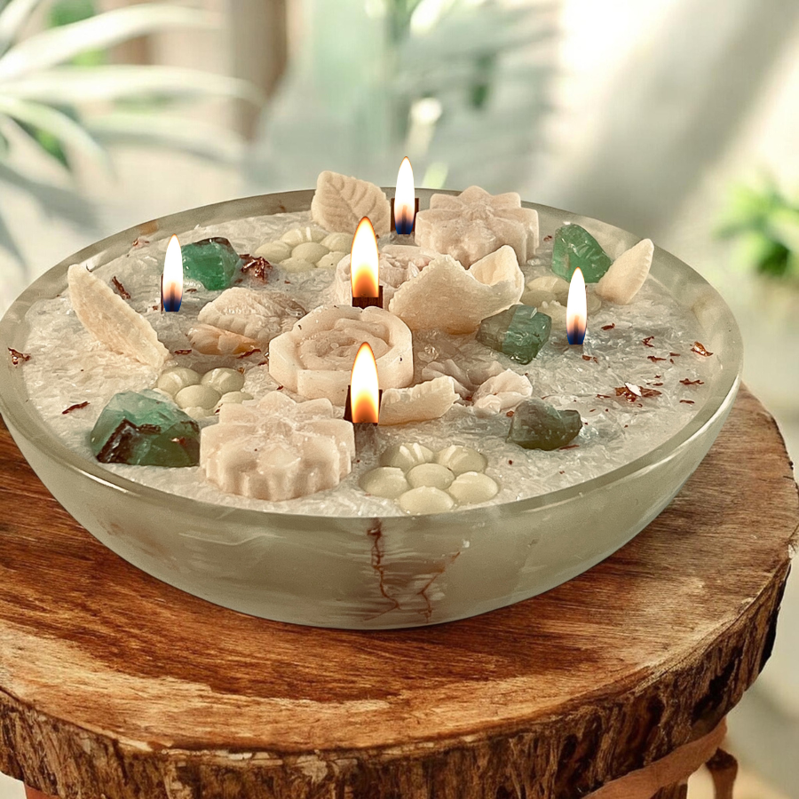 Transform your space into a sanctuary of calm with this handcrafted crystal candle centerpiece.