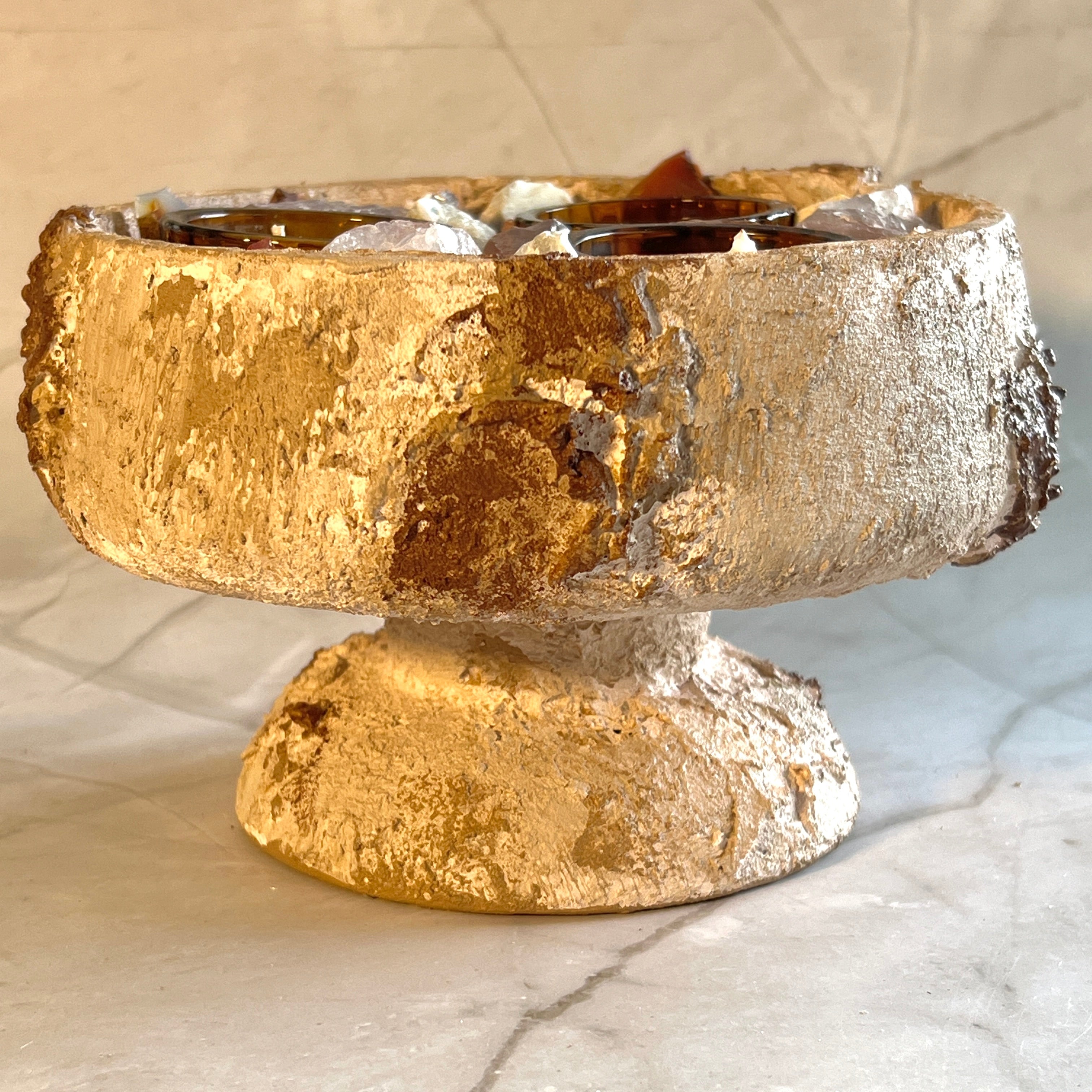 Each candlescape is one-of-a-kind, shaped and finished by hand. Designed with replaceable tealight candles, it can be enjoyed again and again—an enduring decorative piece that evolves with every glow.