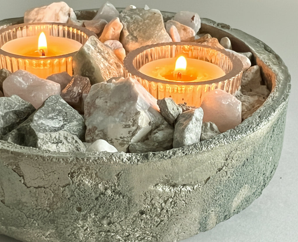 Each candlescape is one-of-a-kind, shaped and finished by hand. Designed with replaceable tealight candles, it can be enjoyed again and again—an enduring decorative piece that evolves with every glow.