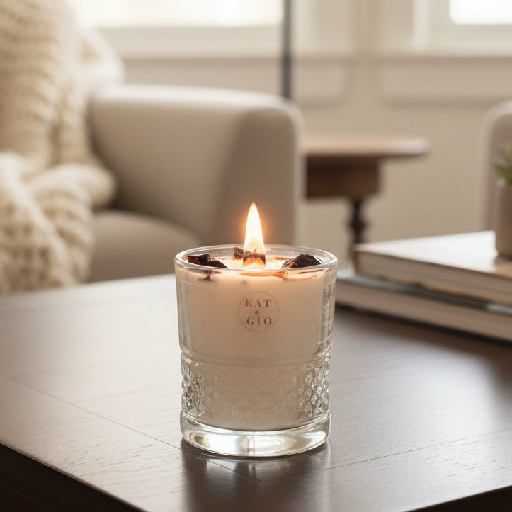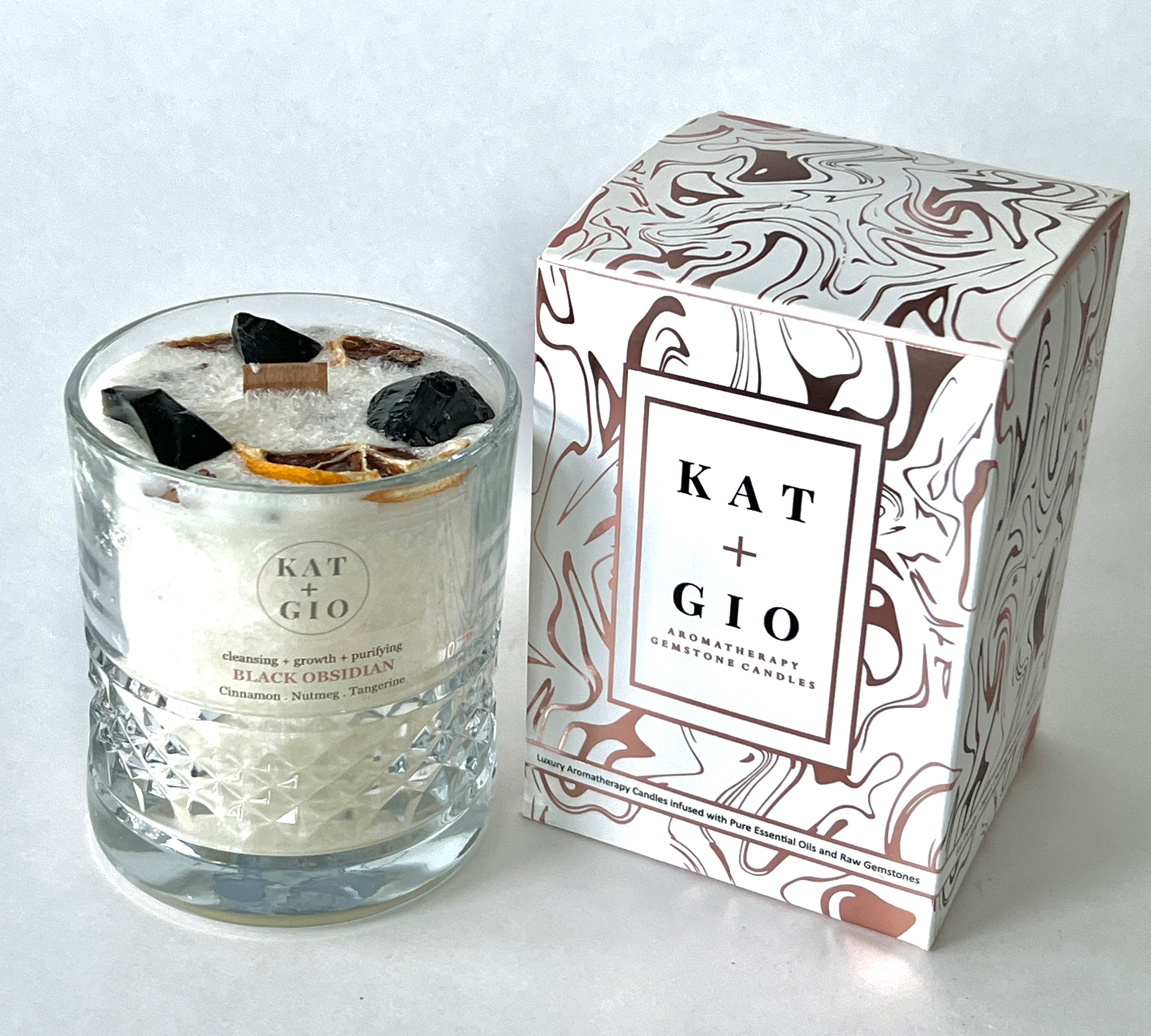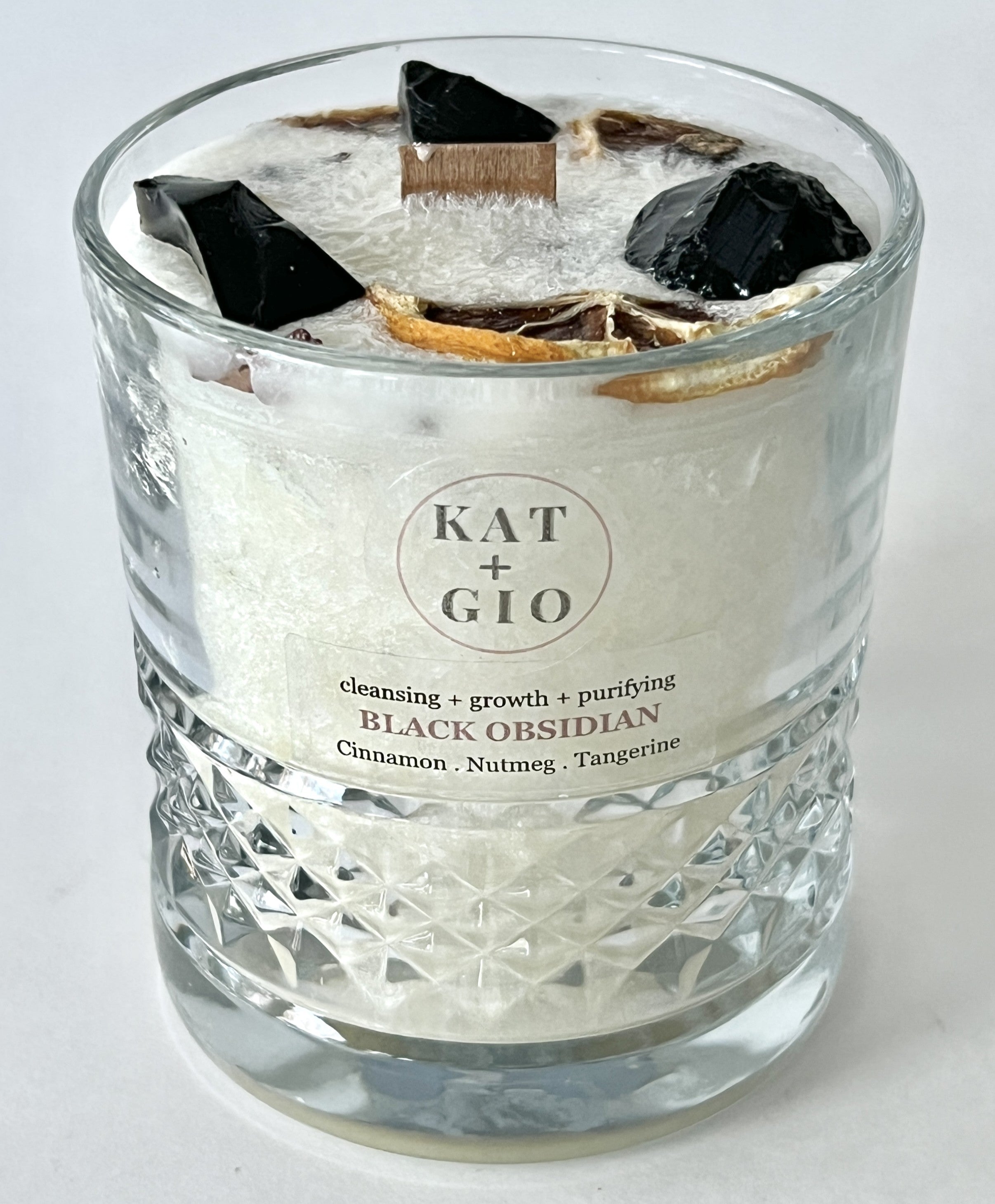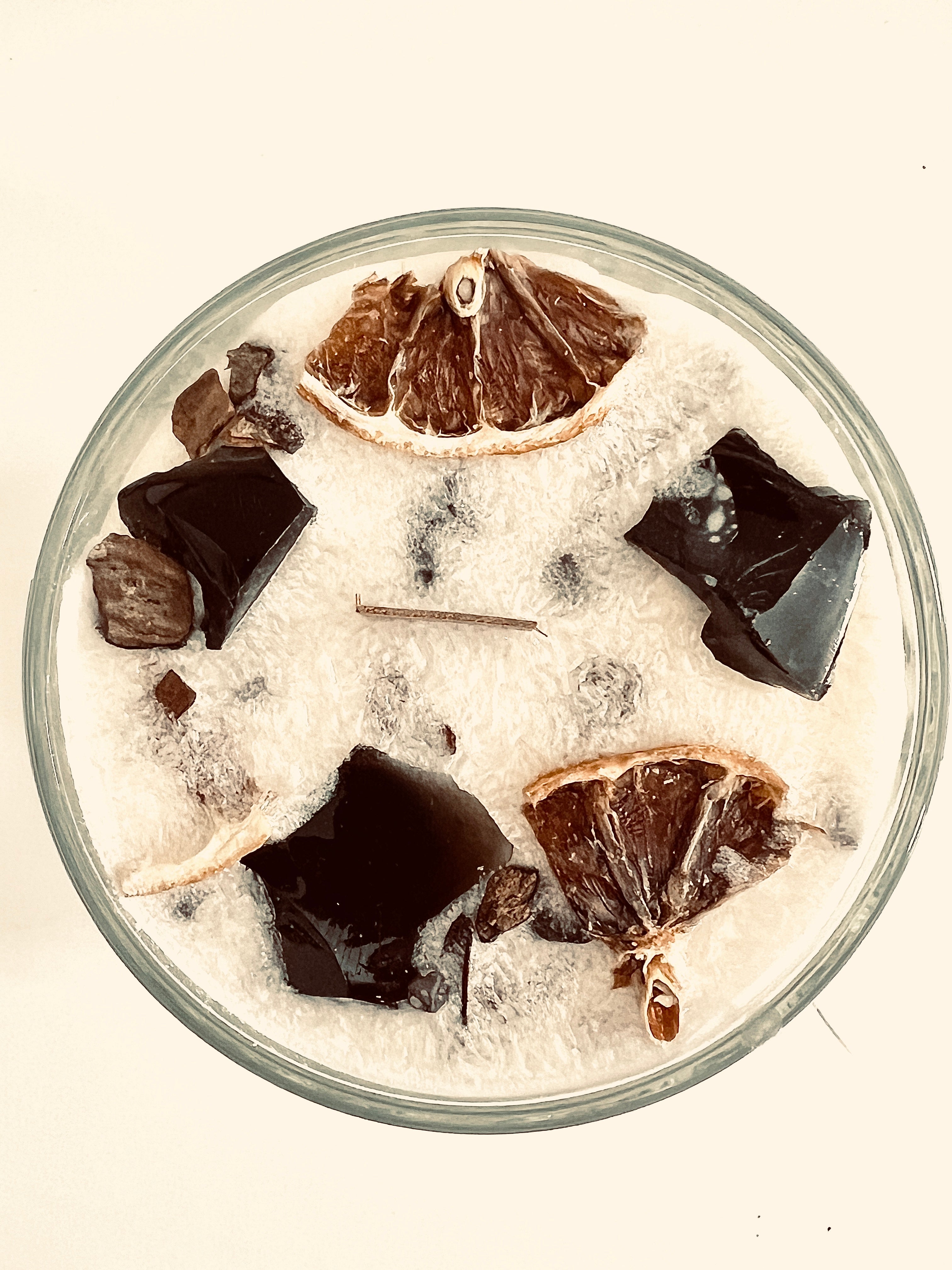 Black Obsidian Crystal Candle I Natural Scented Candle with Healing Crystals 12oz.