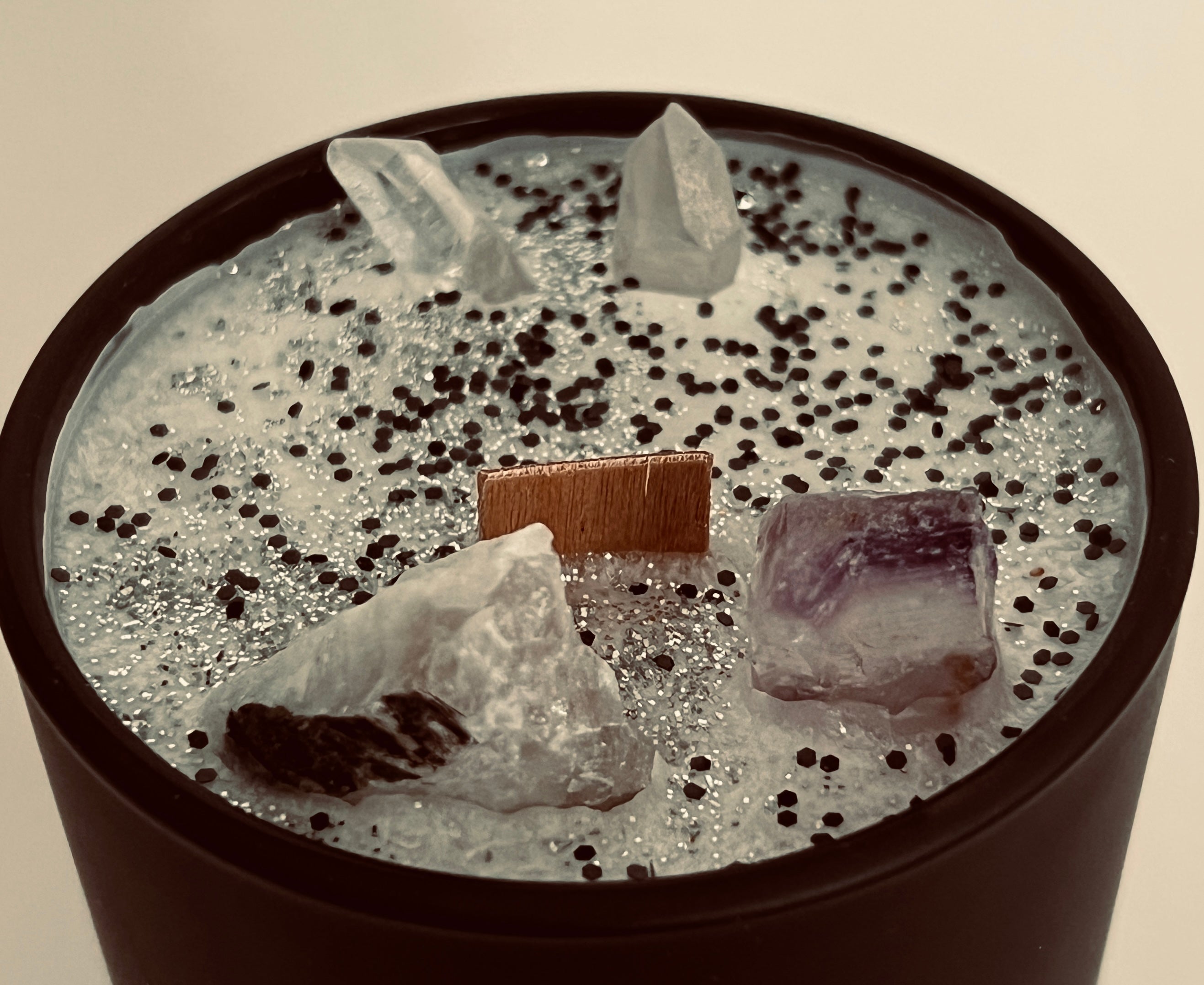 · A beautifully crafted candle infused with crystals, attuned to the potent energies of the full moon.