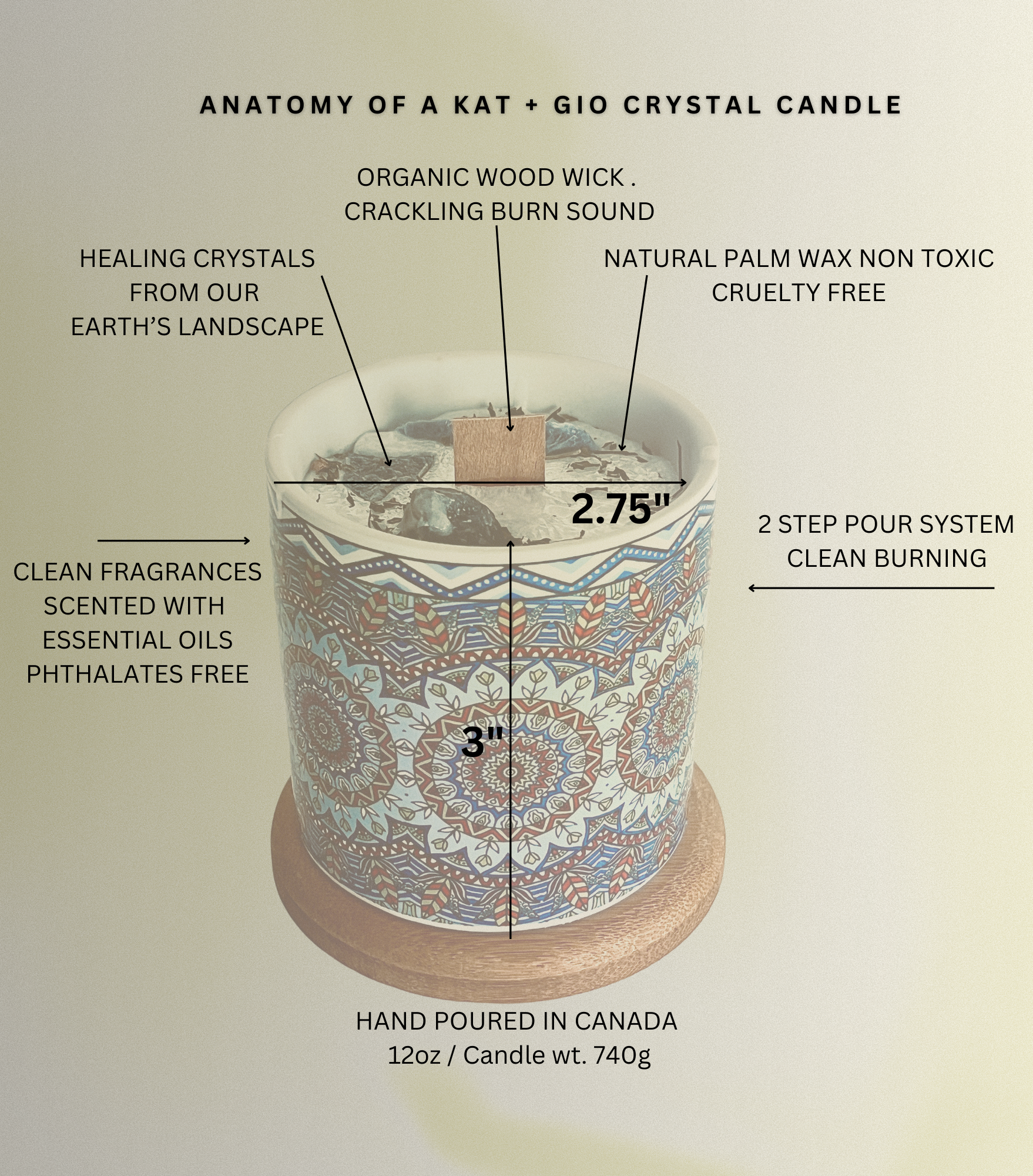 • Hand-poured natural palm wax