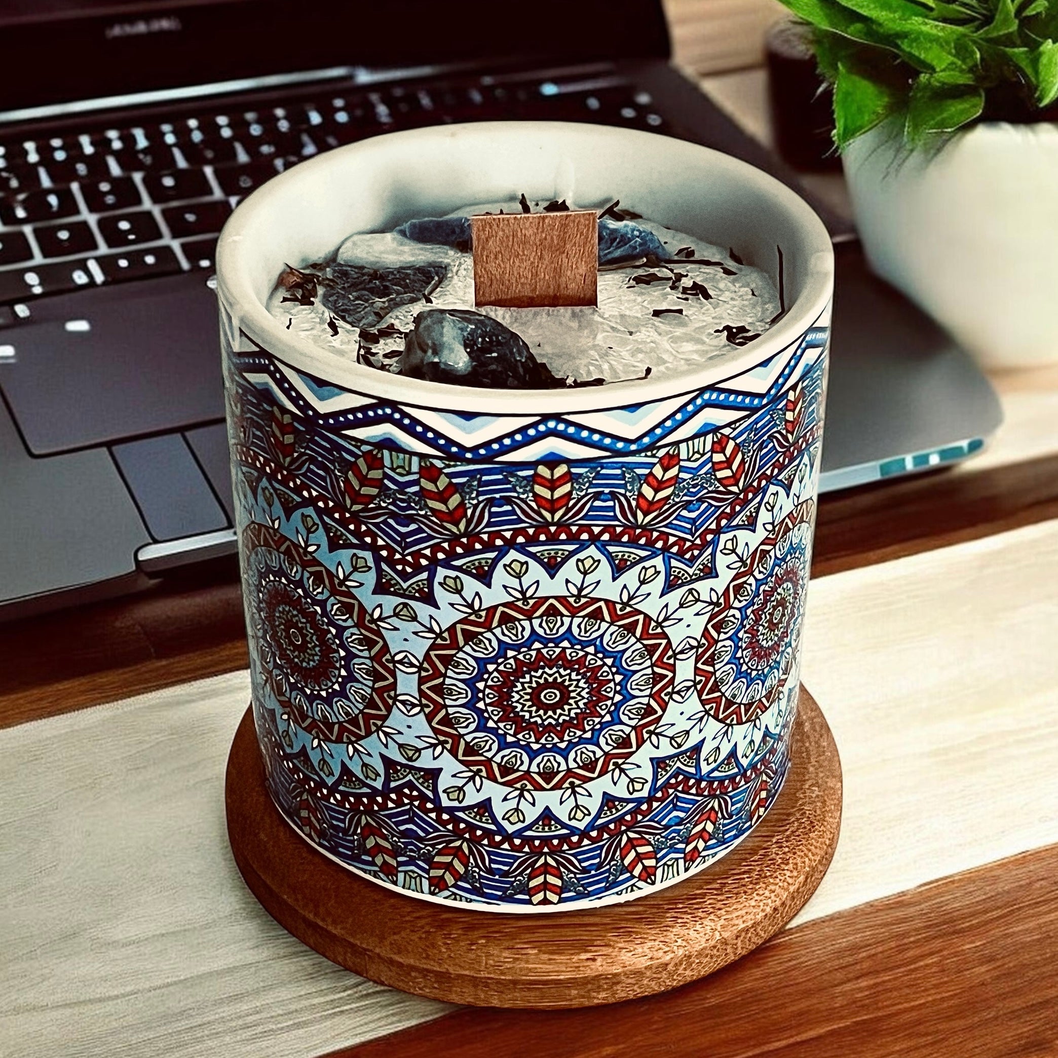 Sodalite Mandala Crystal Candle - Wood Wick